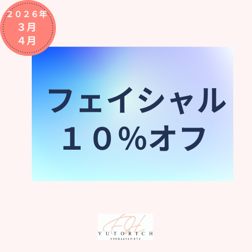 北参道にある大人女性のために鍼灸アロマサロン「アロマはりきゅうYUTORICH」の本間文恵です。2026年3月4月ご来店限定キャンペーンのお知らせです。